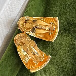 This pair of clip on earrings have some normal wear and have been worn. There are no missing stones.