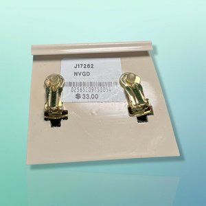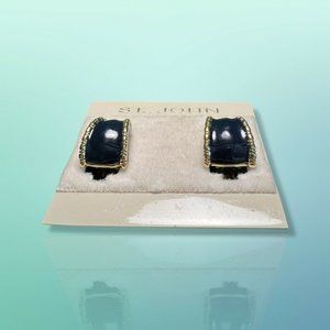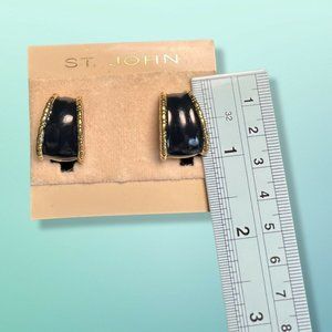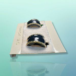 Vintage St John Half Hoop Logo Clip on Earrings Gold and Navy Enamel NOS clip-on