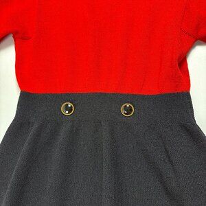 Vintage St. John Marie Gray Womens Knit Dress W/ Belt Red Black Sz 4 Button