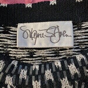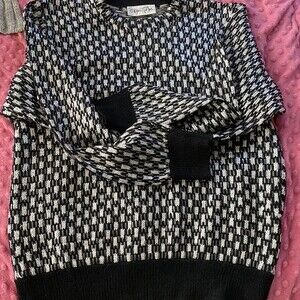 Shimmer and shine in this amazing vintage St. John Couture sweater. Black and silver with a disco ball feel. Perfect for upcoming holiday parties or just any night out. Signature "Santana" yarn - Wool/Rayon blend - Classic and conservative vintage knits