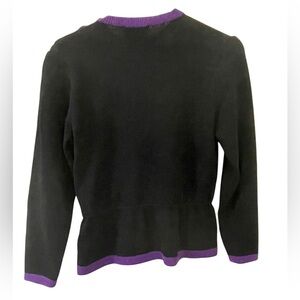 Vintage St. John Purple Trim Peplum Sweater Small Old Money Shoulder Buttons