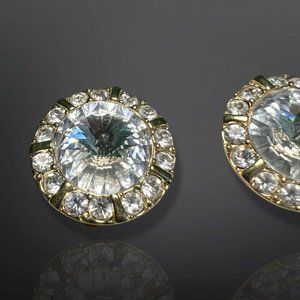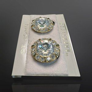 Vintage St. John Round Dome Clip on Earrings Gold Diamond Rhinestone clip-on