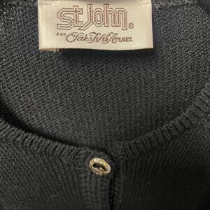 • Features: St. John for Saks Fifth Avenue, Button up front and SJ embellished buttons, Black wool blend classic Santana knit fabric, Long sleeve, Cardigan sweater