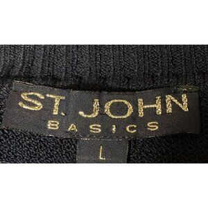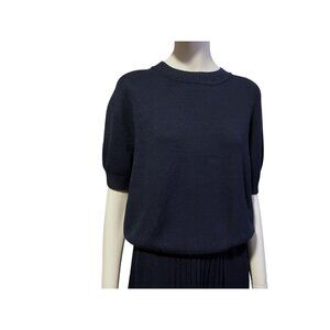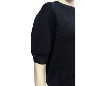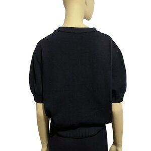 Vintage St John Santana Knit Sweater L Short Sleeves Cropped Navy Blue Minimalist Luxury