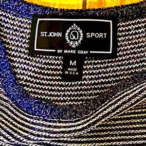 Vintage St John Sport Blue & White Striped Metallic Shell Tank Sz M