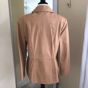 A quality, vintage St John Sport By Marie Gray Tan Blazer Leather Jacket Size M