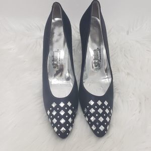 Vintage St. John Studded Bling Pointy Toe Satiny Heels Size 8.5 AAA