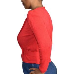 Vintage St John Top Red Sweater Santana Knit Puff Sleeve 80s Marie Gray Size 4
