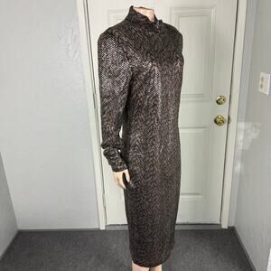 Vintage St. John Women's Dress 10 Shift Sequin Designer Wool Blend Shimmer S23
