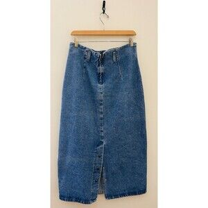This Vintage St. Johns Bay 100% Cotton Maxi Denim Skirt is a timeless piece that exudes a casual yet stylish vibe. Your go to skirt for the fall and winter season! Pair with boots and a chunky sweater! Made in Mexico, this skirt features a solid blue color with a high rise and zip closure. And button slot in the back. The long length and maxi style make it versatile for various occasions such as travel, parties, or casual outings. With a retro feel and accents like buttons and pockets, this skirt is perfect for those who appreciate a blend of American and Bohemian fashion trends from the 90s. The elastic waist and slit add practicality to the design, making it a must-have for any fashion-forward woman.