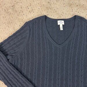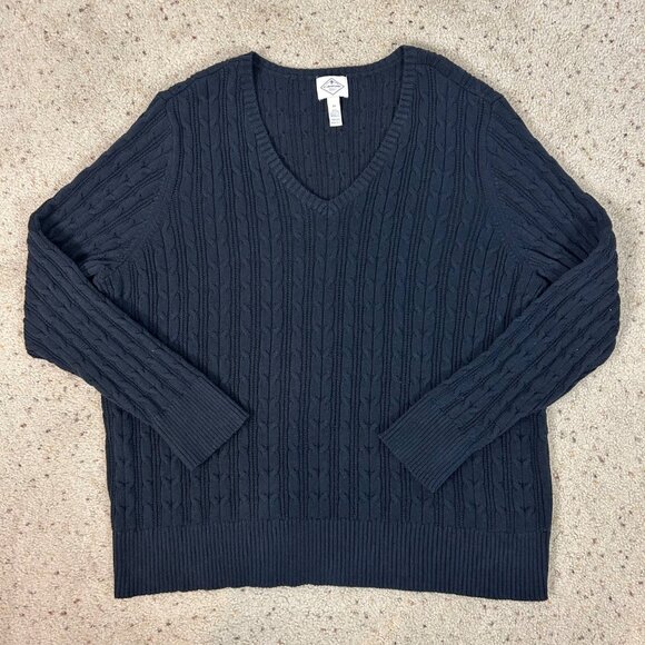 Vintage St John’s Bay Black Cable Knit Fisherman Sweater V-neck Size 3X Women's