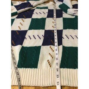 Vintage St Johns Bay Checkerboard Knit Grandpa Sweater Cable Knit Mens L