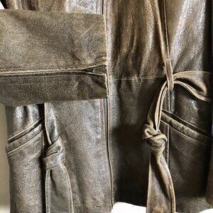 Vintage St. John's Bay Genuine Leather Belted Fur Trim Jacket W Size Large