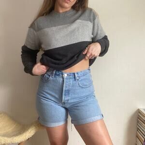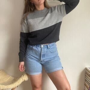 Vintage St. Johns Bay Gray Striped Crewneck Knit Sweater Sz S