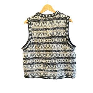 Vintage St. Johns Bay Gray Wool Blend Nordic Fair Isle Zip Up Winter Vest Large