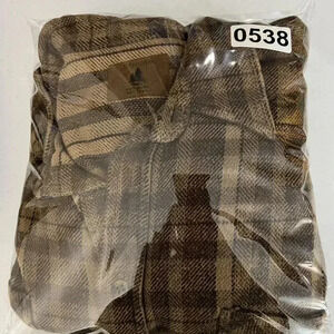 vintage shirt St. Johns Bay brown plaid button down long sleeve shacket style 100% cotton grandpacore mens fashion XL size classic style ayering piece fall wardrobe