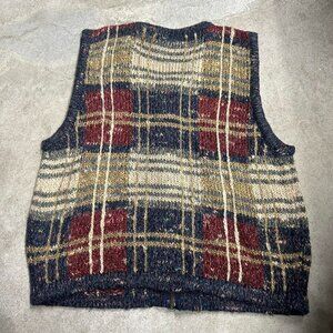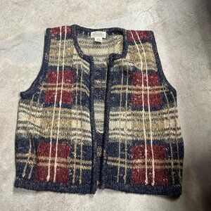 Vintage St John’s Bay Plaid Wool Blend Full Zip Sweater Vest Size Small