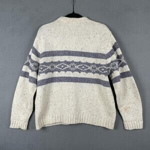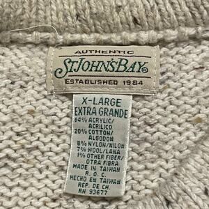 Vintage St Johns Bay Sweater Womens XL Beige Blue Fair Isle Button Cardigan 90s