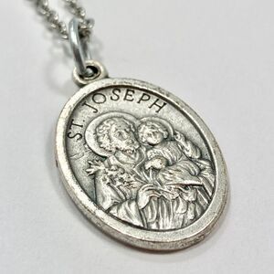 Vintage St. Joseph Medal Pendant Necklace Catholic Saint Baby Jesus Made Italy