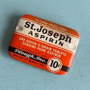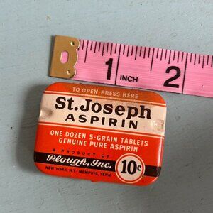 Vintage St Joseph empty Aspirin Tin in Very Good condition 2in x 1 1\4