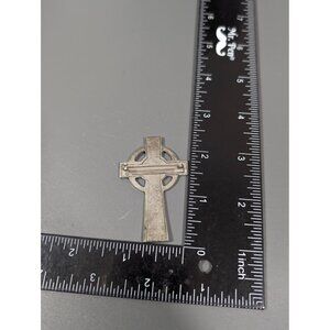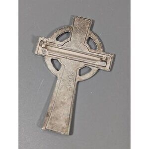 A timeless pewter cross pin brooch featuring intricate Celtic knot design in a silver tone. Perfect for adding a touch of vintage charm and cultural heritage to any outfit.
