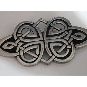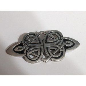 Vintage St. Justin Pewter Pin Brooch Celtic Bow Knots 3.5 in Long 1.5 in Wide
