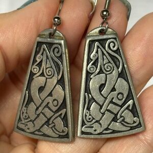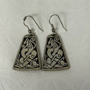 Vintage St. Justin Pewter Silver Tone Pierced Earrings With Celtic Design