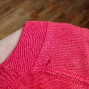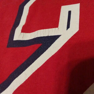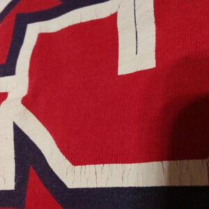 Pre-owned. Some general wear and tear, some cracks in the print, a couple of spots / stains and a hot le near the collar. A little rough cosmetically, but still a great vintage and unique treasure!