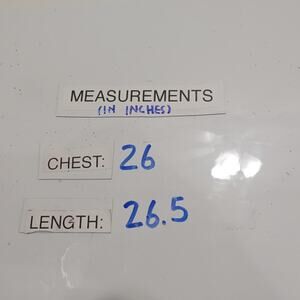 Measurements shown in photos: Chest 26 in, Length 26.5 in