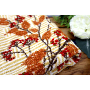 Vintage St. Mary's Bath & Hand Towel Set Gold Brown Red Fringe Retro Made In USA