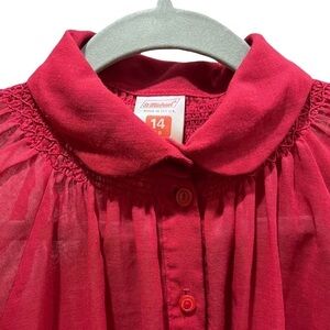 Vintage St. Michael 80’s Semi Sheer Cotton Blend Smocked Blouse Round Collar 10