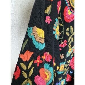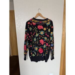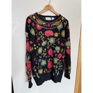 Vintage St. Moritz Floral Embroidered Knit Sweater Medium Colorful Ramie Cotton