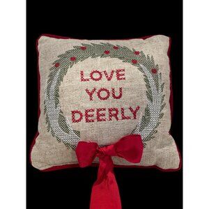 Vintage St. Nicholas Square Love You Deerly Decorative Pillow with Wreath & Bow