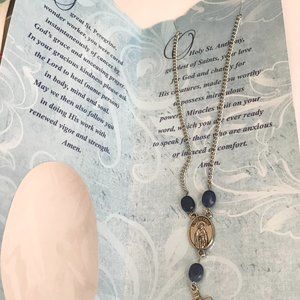 Vintage St Saint Anthony Peregrine Cross Necklace Medal Catholic 21" Blue Beads
