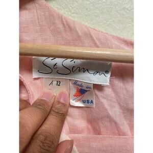Vintage St. Simon Womens Dress Sz 12 Pink Linen Pleated Cottagecore Prairie FLAW