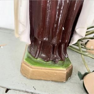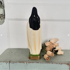 Vintage chippy Columbia (Italy) chalk statuary of St. Teresa of Lisieux, the Little Flower.