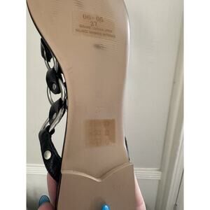 Vintage St Tropez Thong Sandals Sz 37 Vintage Y2K Black Metal Ring Chain Leather