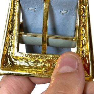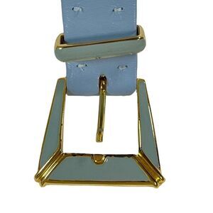 Vintage St. John Blue Leather Belt With Enamel Gold Buckle Classic Size 6 'READ'