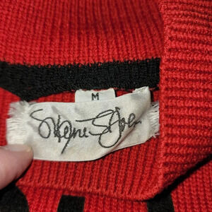 Vintage St John Womens Red Turtleneck Balloon Sleeve Initial Sweater Medium.