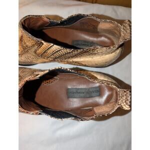 In decent shape with some wear. Real Snake Skin. Very cool. They run a little bit small. I'd say about a half size. They are size 9 on the inside but i listed them a 8.5