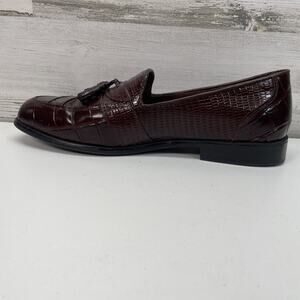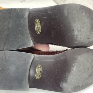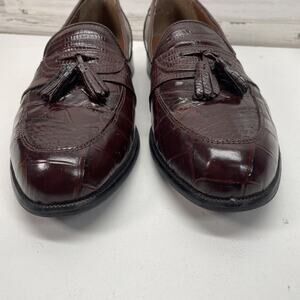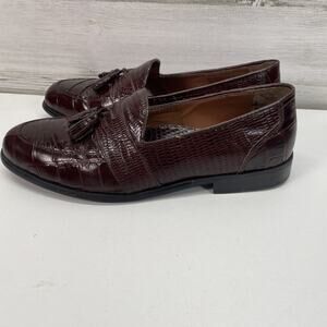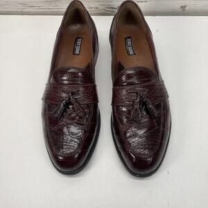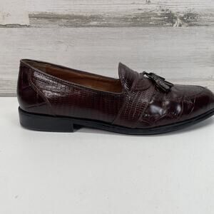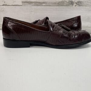 These Vintage Stacy Adams Men's Genuine Snakeskin Dress Shoes are a stylish and unique addition to any man's wardrobe. With a slip-on closure and leather outsole, these shoes feature a round toe shape and tasseled accents for a classic look. The genuine snakeskin pattern adds a touch of retro charm, making them perfect for any season. Designed for comfort and style, these dress shoes from Stacy Adams are sure to make a statement.