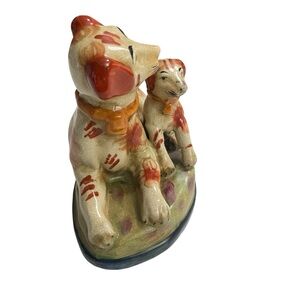 Vintage Staffordshire Spaniel Dog & Puppy Statue