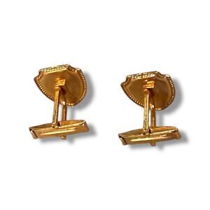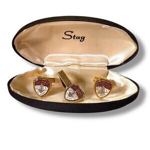 Vintage Stag Cufflinks and Tie Clip Set Gold Tone Enamel San Antonio Alamo