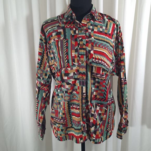 Vintage Stage West 90s Geometric Print Button Western Shirt Mens Med/Womens Lg