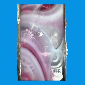 Vintage Stained Art Glass Face Woman Abstract Pink Mini Slag Swirl Signed ECK