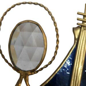 Vintage Stained Glass Angel Figurine AS IS Guitar Music Musician Blue Brown