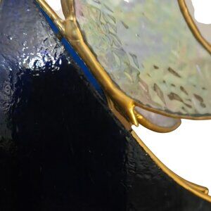This stained glass angel figurine features a delightful blend of colors, with a striking blue robe and iridescent wings. Perfect for adding an elegant touch to any space, this piece boasts intricate detailing and a charming guitar.