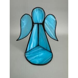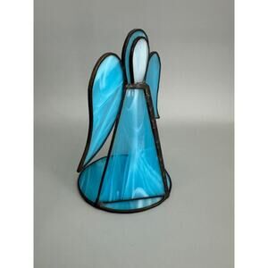 Vintage Stained Glass Angel Iridescent Blue Standing Votive Candle Holder