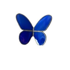 Charming vintage stained glass butterflies in vibrant blue and yellow glass. Each butterfly measures approximately 3" x 3" and features beautiful handcrafted detail with silver-tone solder lines.