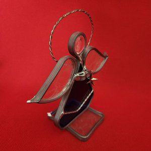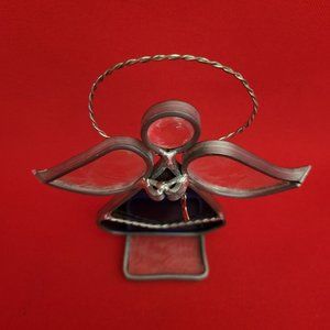 Vintage Stained Glass Free Standing Angel Holding a Star Blue Suncatcher